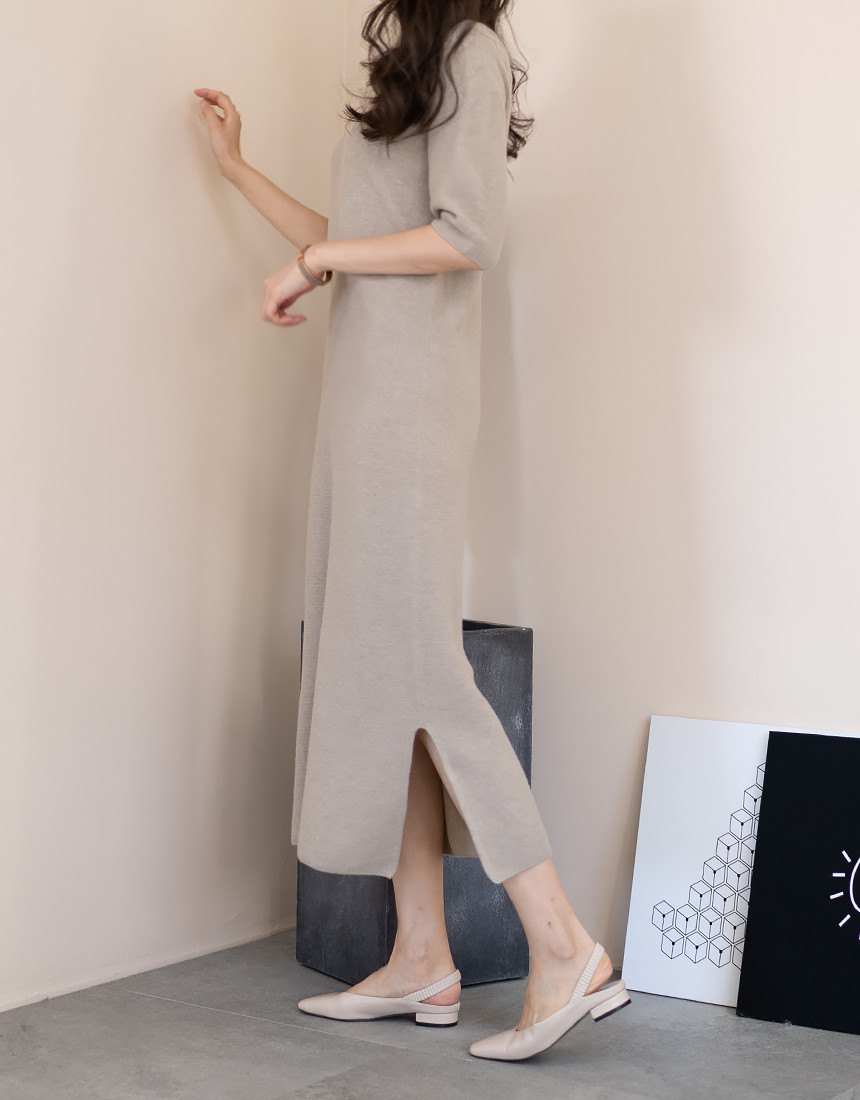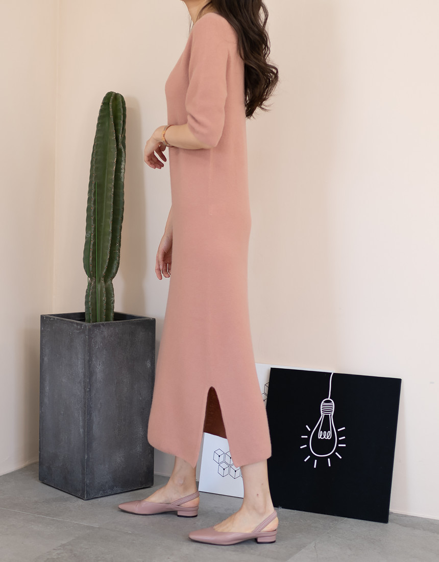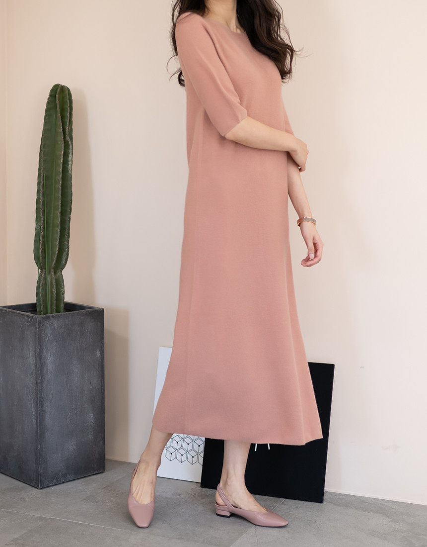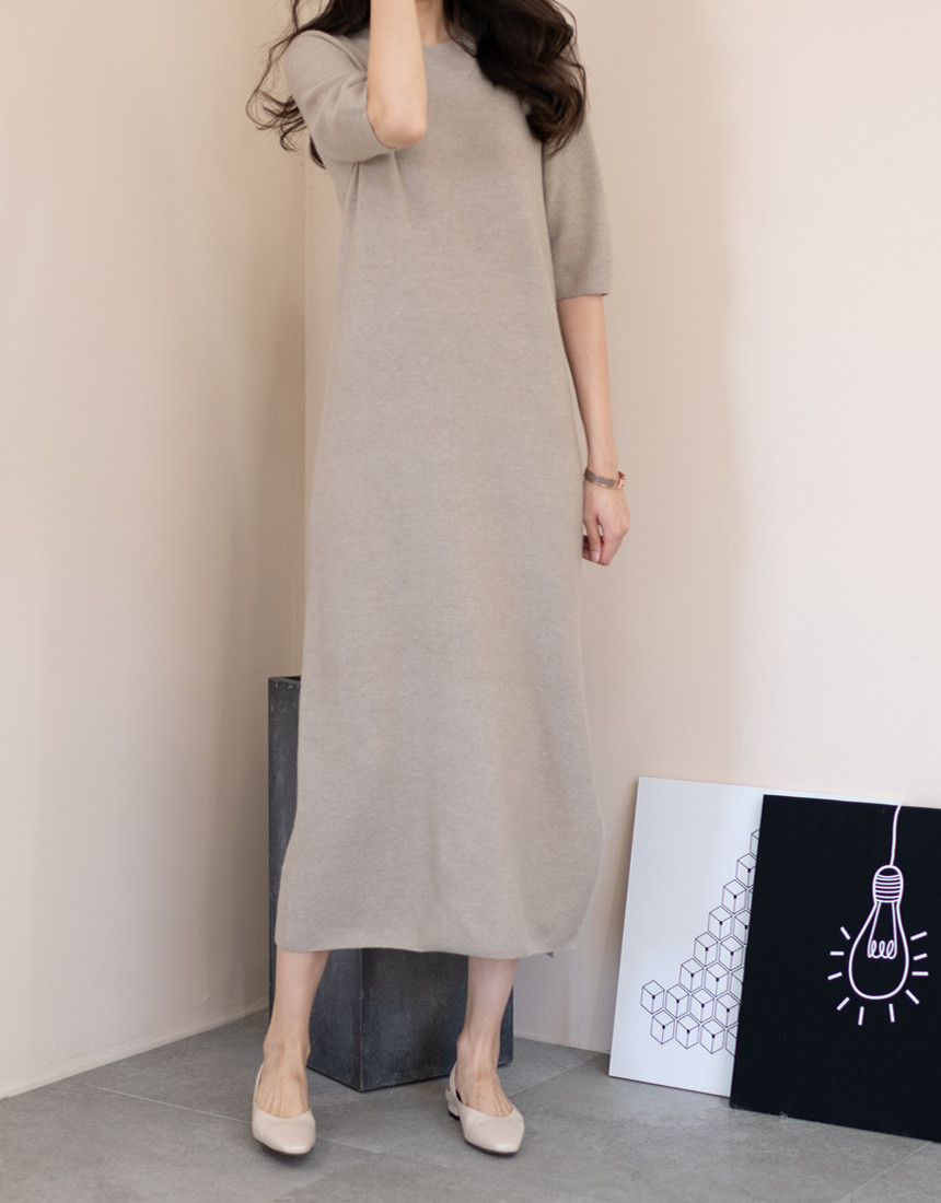 #라운드 트임 롱 니트원피스 홀가니트원피스