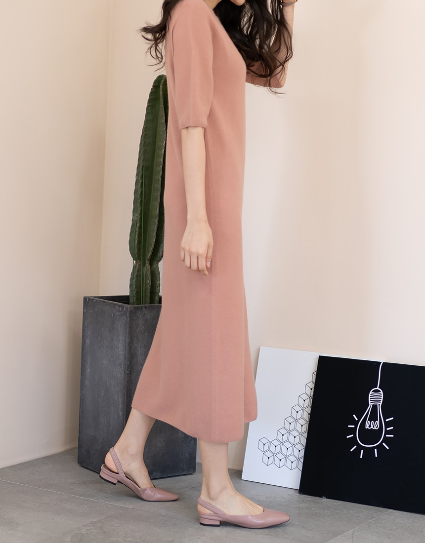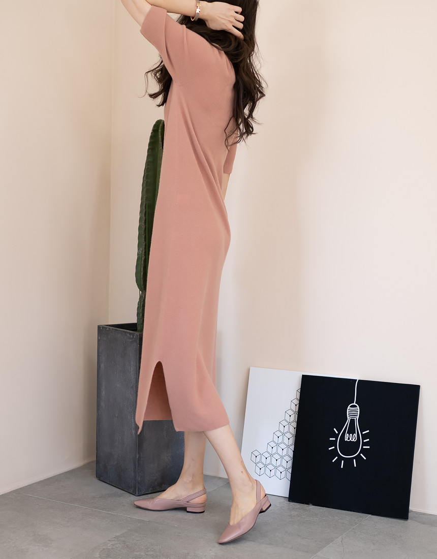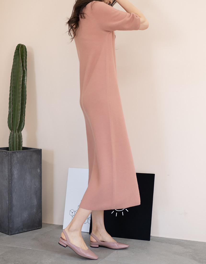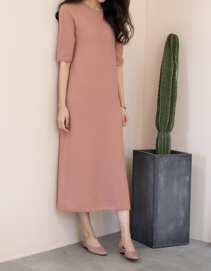 #라운드 트임 롱 니트원피스 홀가니트원피스