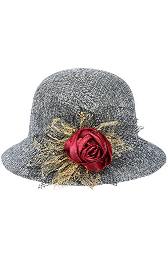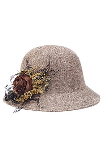 (Lettre d'amour)/Accessories/Hats/DIRECT FROM USA/Lettre d'amour Women UV-Protection Flower Linen Cloche Bucket Bowler Dress Hat Cap