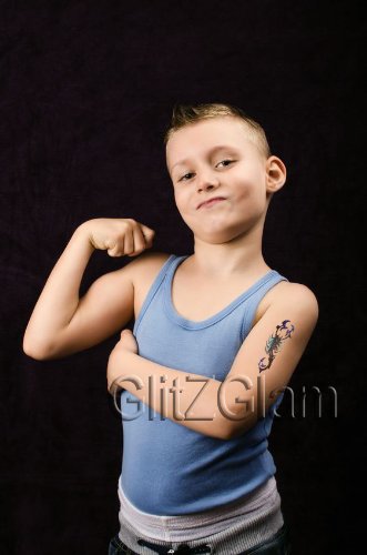 -. Feature : ROCKSTAR large glitter tattoo kit includes everything you need to create amazing temporary tattoos for children, teenagers and adults / 10+2 bonus top-favorite tattoo designs / 60% more glitter & body adhesive and a lot more colors and designs variety compared to other brands / 6 extra large glitter colors: Sparkly Black, Deep Blue, Metallic Gray, Orange, Red and Turquoise plus 2 high-quality cosmetic brushes & 1 special formula body adhesive / HRIPT & CPSIA (Consumer Product Safety Improvement Act) certified - in other words: very safe to use!