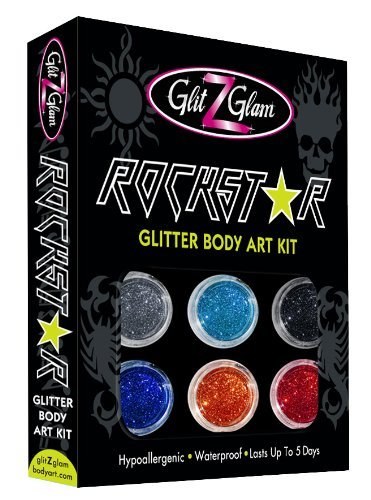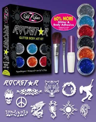 -. Title : Glitter Tattoo Kit ROCKSTAR with 6 Large Glitters & 12 Stencils for Temporary Tattoos