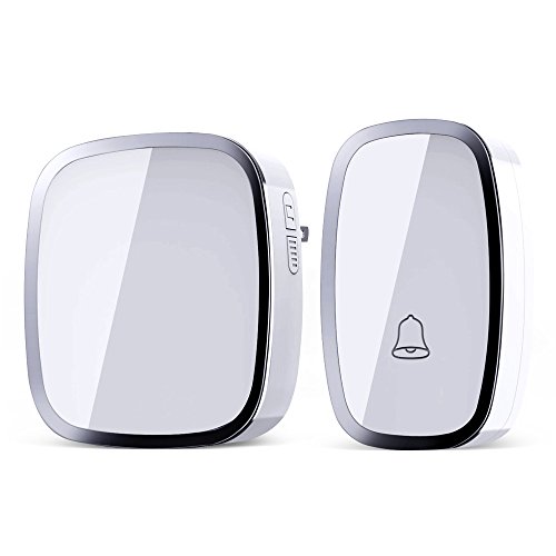 -. Feature : Wireless range- Up to 1000 feet/280 meters in the open area ensures that you will never miss any visitors.A perfect use if you have a first floor and basement, garage, or second floor and you want both areas to ring from someone pressing a single transmitter button / 36 different chimes -There are 36 different pleasant chimes with 4 levels of adjustable volume (High / Medium / Low) from 25-85dB,meet the needs of different environments / Easy Installation - No batteries required for receiver, just plug the receiver into an electrical outlet. The 12V 23A battery for the transmitter is included. Push button can be fixed to the door-frame with the attached adhesive tapes / LED flash alert - Blue flash light makes it a more obvious reminder when you are in a noisy environment to ensure timely response / Outdoor use rated Ip44 waterproof- Excellent materials keeps itself from getting higher temperature & interference. The push button is rated IP44 and weatherproof for outdoor use,even in a rainy day and withstands various harsh weather conditions