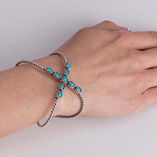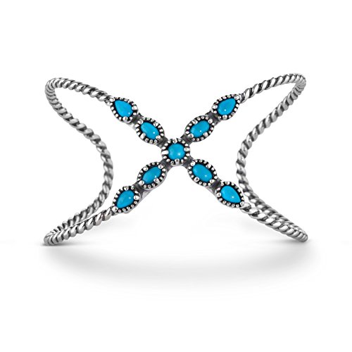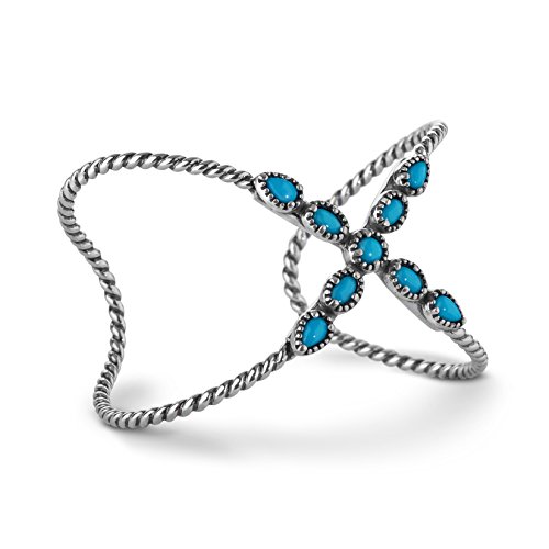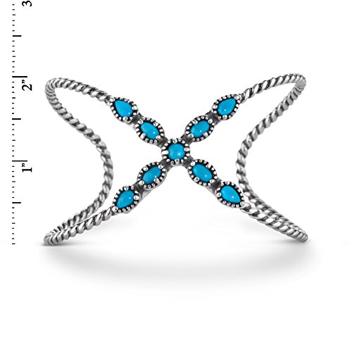 Dress in style in this fabulous x cuff bracelet from Carolyn Pollack. Banded with a signature rope style, this cuff bracelet is fun and fashionable. Nine individual cabochons of beautiful Sleeping Beauty turquoise sit atop the x frame making this bracelet an incredible statement of style