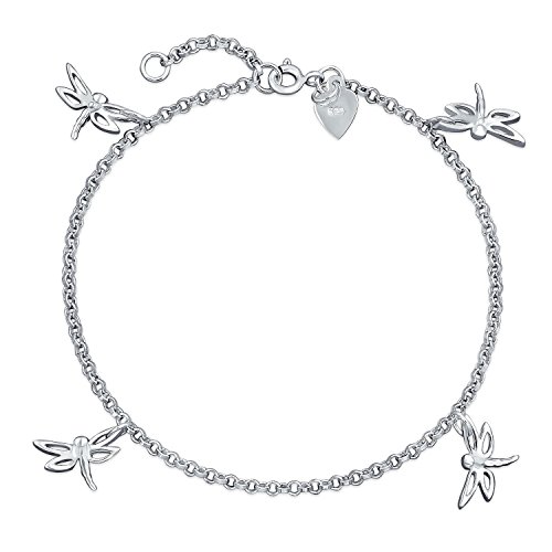 Dragonfly charms come displayed around our cute anklet bracelet for that special exotic look. This ankle bracelet is playful and casual. It is also a great present for summer time fun. The silver anklet is made with .925 sterling silver. More than just another scene stealing piece, this alluring dragonfly charm bracelet is the perfect compliment to any style.Feature