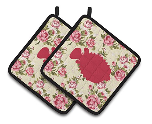 Caroline's Treasures Fish - Blowfish Shabby Chic Yellow Roses Pair of Pot Holders BB1016-RS-YW-PTHD, 7.5HX7.5W, Multicolor