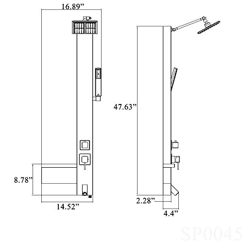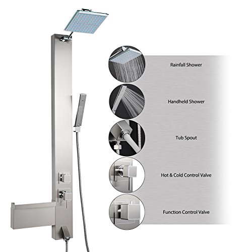 Golden Vantage 47" Wall Mount Type Multi-Function Over Head Rainfall Style Stainless Steel Shower Panel Tower System w/ Tub Filler Faucet Handheld Wand