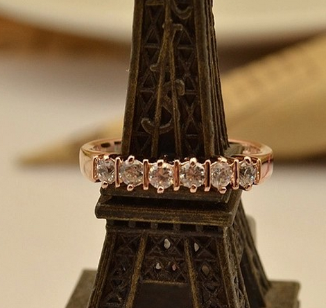 cincin cantik berlapis mawar emas kristal pertunangan pernikahan hadiah wanita fashion rose gold plated crystal engagement ring line reward women JEW SJA0846535262 GHJ qty003