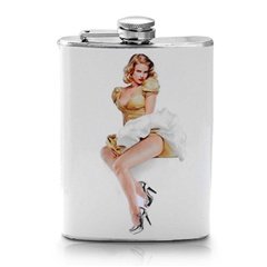 -. Title : 316L Stainless Steel Hip Alcohol Liquor Wine Drinking Flask 8oz with Pin Up Girl P.R.Int Design