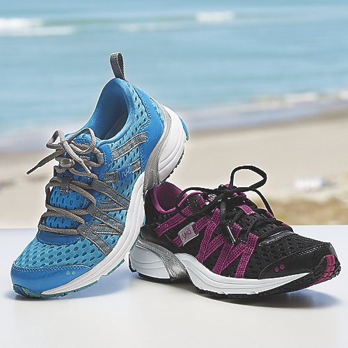 Hybrid water shoe designed with quick dry upper, webbing brace for midfoot support and drainage system in the midsole and outsole. Easy on-off design. Appropriate for all of your water fitness needs. Webbing midfoot cage provides medial and lateral supportFeature