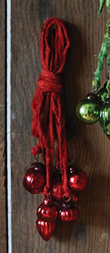 10 Inch Long Mercury Glass Tassel Ornaments on Velvet - Red