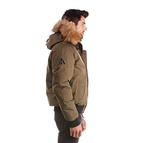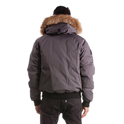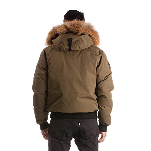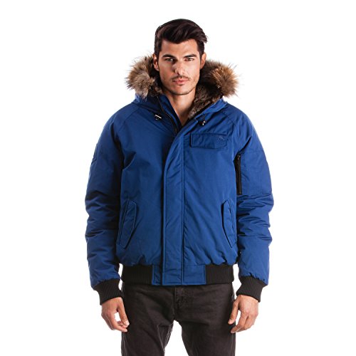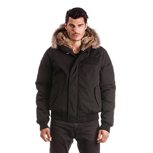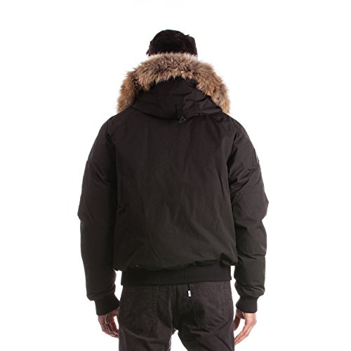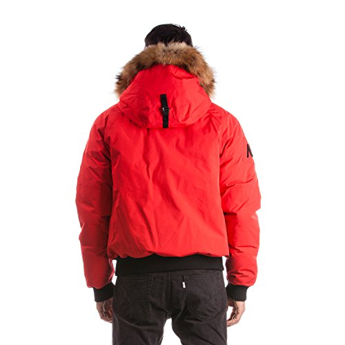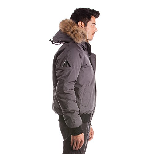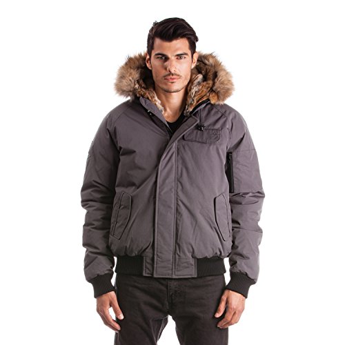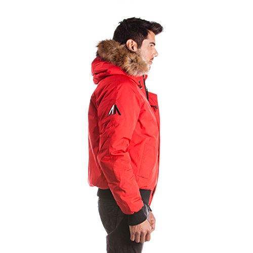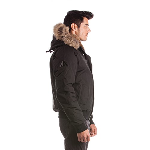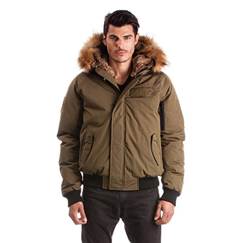 Binding : Apparel Product Description Winter jacket, water proof, filled with white duck down and non-removable hood with draw string cord. Casual style, designed for daily wear and offering comfort and warmth. Designed and manufactured in Canada; Relaxed fit with back length measuring 25in/63.5 cm in size M; 2 front pockets lined with polyester fleece; 2 chest pockets with an Arctic North logo embroidered on flap; 2 inside zipper pockets and 1 inside phone pocket; A functional zipper pocket on the sleeve; Wind resistant shell 85/15 polyester/cotton and water proofing up to 10000 mm; 80/20 white duck down; Rib cuffs and rib waistband; 5 layers to insure warmth at -40 C : shell /baffle /down /baffle /lining; Genuine raccoon fur trim on hood; Genuine rabbit fur lining on hood; Front has a heavy duty YKK zipper; Invisible magnetic buttons on front zipper panel; Metal Logo Arctic North on right sleeve; 0