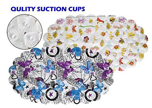 Cartoon Sea Shell Oval Suction Non-slip Natural Rubber Bathtub Shower Bath Mat Anti-Bacterial Tub Kitchen Balcony Washable (14.3"×26", Butterfly)