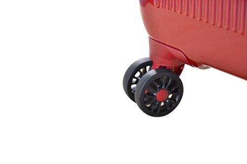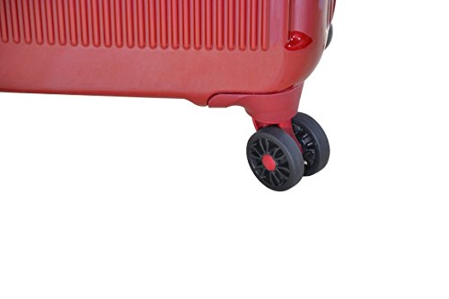Studio : Master Home Products, LTD. Publisher : Master Home Products, LTD. Binding : Apparel Product Description 20 inches and four wheel molded PC ABS upright / carryon. Re-engineered lighter weight four wheel spinners allow for effortless 360 degree mobility. Durable ABS exterior with molded corner reinforcement for maximum impact resistance and fully lined interior. Lid features a large u-shaped zipper pocket. Convenient and flexible top and side handles allows for easy lifting. Side bezels allow upright to stand on its side. Four wheel construction allows uprights to be rolled in any direction. Retractable locking handle system. Side mounted TSA approved lock ensures security while traveling and allows airport screeners to unlock, inspect and relock bags without damaging the lock. 0