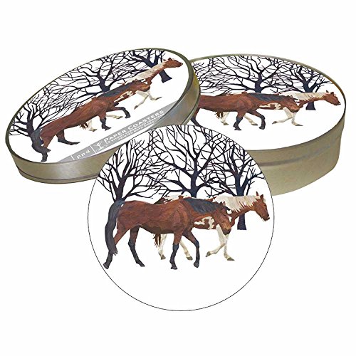 Paperproducts Design Pulpboard Coaster Set Featuring Winter Horses Design, 4 x 1", Multi