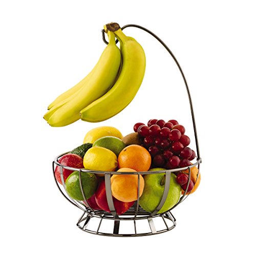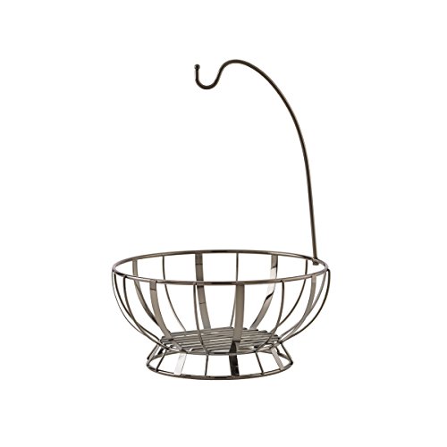 - Fruit basket with banana hanger includes 12-inch round fruit basket