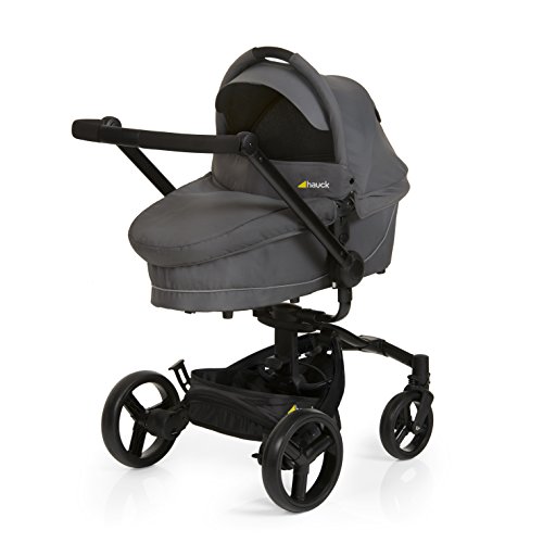 Hauck Twister Trio Set Kinderwagen Komplettset ab der Geburt Let's twist again.... Dieses Twister Trio Set begeistert einfach jeden, denn es bietet Ihnen Flexibiliät pur - ab der Geburt bis ins Kleinkindalter. Twistern Sie mit! und drehen Sie Babywanne, Autositz oder Sportsitz mit nur einem Handgriff um 360°. Ihr Kind kann im Wagen sitzenbleiben und Sie können die Blickrichtung Ihres Kindes immer nach Wunsch ändern. Der Twister kann noch mehr. Das stylische und innovative Fahrgestell zieht alle Blicke auf sich und setzt definitiv Akzente. Seine hochwertig verarbeiteten Stoffe und seine Aerodynamik punkten ebenfalls auf der ganzen Linie. Der besonders leichte Twister-Aluminiumwagen verspricht Ihnen mit seinen um 360° schwenk- und feststellbaren Vorderrädern, Fahrspaß pur. Bei Ihren Entdeckungstouren fängt eine Federung Stöße sanft ab und die Feststellbremse sorgt dafür, dass der Twister immer sicher stehen bleibt. Der weiche Schiebegriff ist höhenverstellbar und lässt sich individuell an die Körpergröße anpassen. Ihre Einkäufe lassen sich mühelos im großen Korb verstauen. Die kuschelige Babywanne mit weicher Matratze und Sonnenblende ist einfach perfektn für Ihr Neugeborenes. Hier liegt es rundum geborgen und fühlt sich wohl. Auch der Zero Plus Comfort 0+ Autositz bietet Ihnen so Einiges. Durch sein innovatives Seitenaufprallschutz-System mit patentierter Verwendung von schockabsorbierendem PU-Schaum und dem gepolsterten 3-Punkt-Gurt, garantiert er bei jeder Autofahrt optimale Sicherheit für Ihr Kind. Ein zusätzlicher Kopfschutz stützt das Köpfchen Ihres Babys optimal. Ein Sitzkeil sorgt für die richtige Position des Babys in der Liegeschale. Für Ihre Shoppingtouren kombinieren Sie Autositz und Fahrgestell einfach zu einem praktischen Shop'n Drive-System. Die benötigten Adapter sind im Lieferumfang enthalten. Für gute Laune sorgt auch der bequeme breite SportsitzFeature