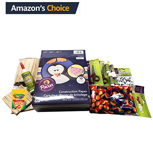 Super Deluxe Kids Arts and Crafts Set - Construction Paper, Scissor, Glue, Crayons, Craft Sticks, Pom Poms, Wiggly Eyes