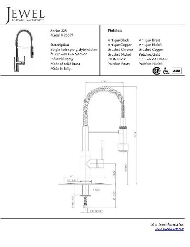 Jewel Faucets 25557 Single Hole Kitchen Faucet with Spring Spout and Two Function Commercial Sprayer in Chrome