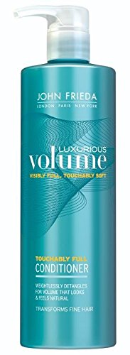 -. Binding : Health and Beauty -. Brand : John Frieda -. EAN : 0717226190087 -. Feature : It keeps patented technology and penetrates all hair types, filling damaged areas from the inside out / Restores fullness while it strengthens and lifts hair for healthy volume that starts at the root / The resulting textural change makes hair feel and look more voluminous / Apply shampoo to wet hair, lather, rinse well. Follow with Luxurious Volume Touchably Full Conditioner. / shampoo and condition with Luxurious Volume Touchably Full Shampoo and Conditioner to thicken strands. The formula is gentle enough for daily use. -. IsAdultProduct : 0 -. Label : KAO Brands -. Manufacturer : KAO Brands -. MPN : B06X3RPSGS -. NumberOfItems : 1 -. PackageQuantity : 1 -. PartNumber : B06X3RPSGS -. ProductGroup : Beauty -. ProductTypeName : BEAUTY -. Publisher : KAO Brands -. ReleaseDate : 2017-02-13 -. Size : 20 Ounces -. Studio : KAO Brands -. Title : John Frieda Luxurious Volume Touchably Full Conditioner, 20 Ounce -. UPC : 717226190087