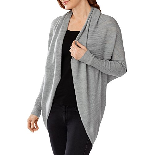 Relaxed fit gently drapes off the body. Merino wool naturally repels odor, wicks away moisture, and dries quickly. Convertible layer can be worn as a wrap draped in the front or the loop behind the neck can be pulled to style as a keyhole-back shrug. Long dolman sleeves with extended rib knit cuffs. 60% merino wool, 20% nylon, 20% acrylic. Machine wash cold, dry flat. Imported.