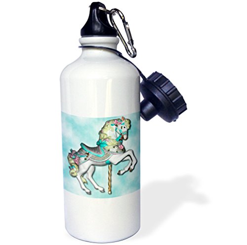 3dRose wb_1186_1 Carousel Horse in Blue Sports Water Bottle, 21 oz, White