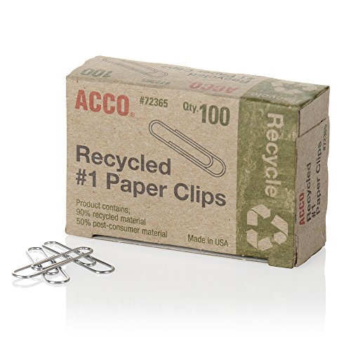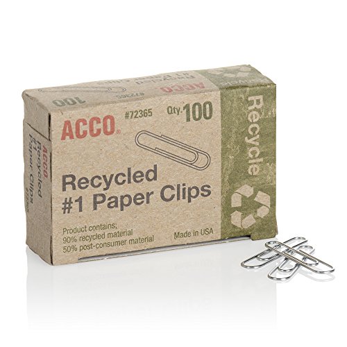 ACCO Recycled Paper Clips, 100/Box, 10 Pack (72365)