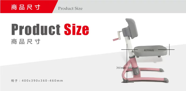 Desk: 1200X600X580-780mm, the main desktop is 700X500mm, Chair: 390X400X360-460mm