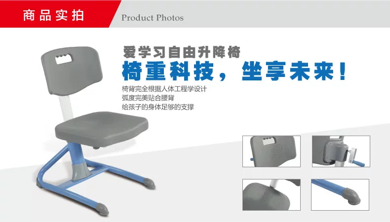 The lowest seat height is 34 cm, child (whose height is 1.2 m) can down to earth and achieve the correct posture easily.