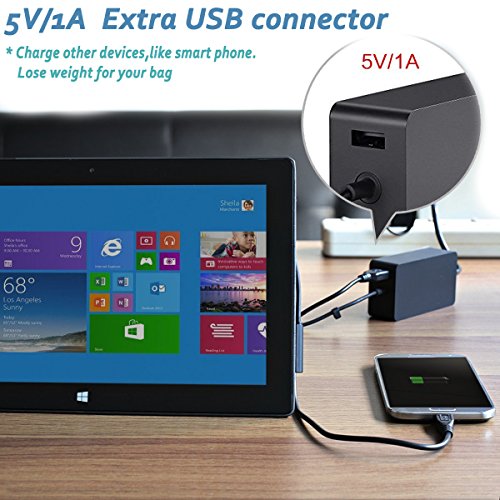 EBK New 48W 1536 Surface Charger For Microsoft Surface Pro 2 1536 5HX-00004 5HX-00001 10.1 Windows 8 Tablet PC with USB Charging Port & Cord