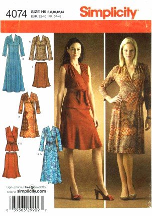 -. Title : Simplicity 4074 Sewing Pattern Knit Dress Top Skirt Sash Size 6 - 14