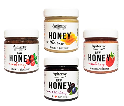 -. Feature : Apiterra Raw Honey Variety Gift Set, 4 Pack contains 1 Raw Honey with Açaí & Blueberry, 1 Raw Honey with Raspberry, 1 Raw Honey with Cranberry and 1 Raw Honey / Top choice for natural sweetener / Try Apiterra Raw Honey with tea, breakfast bowls, overnight oats, on toasted rye bread, with your smoothie / Fantastic choice for a gift for any occasion / Unfiltered, unheated and unpasteurized honey imported from Belarus (Europe) and packed in Brooklyn, NY; no chemicals, pollutants, and no artificial ingredients