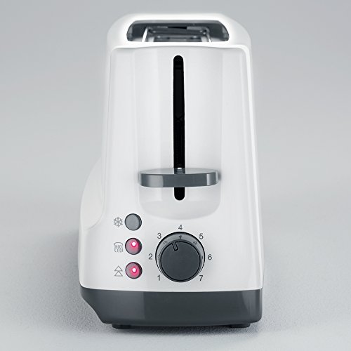 -. Feature : Leistung: ca. 800 W / integrierter Brötchen-Röstaufsatz / Defroster-Stufe mit Kontrollleuchte / Aufwärm-Stufe ohne zusätzliche Bräunung mit Kontrollleuchte / Brotscheibenzentrierung für die gleichmäßige Bräunung beider Brotseiten