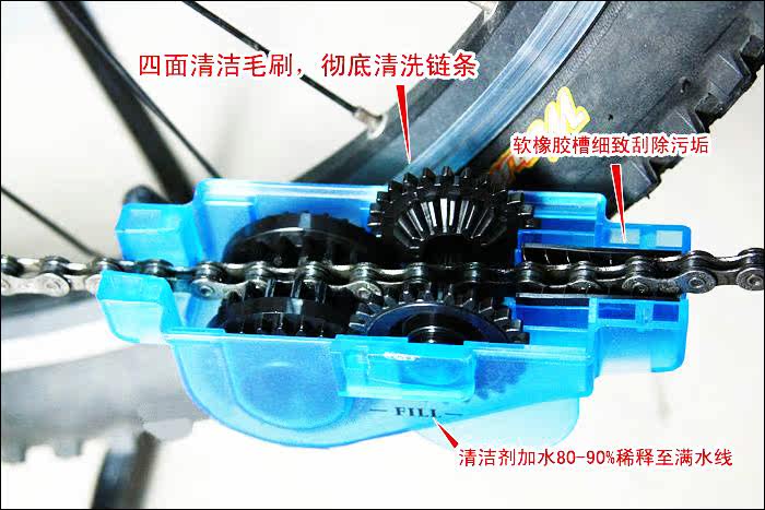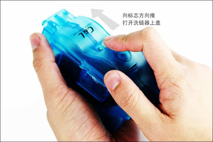 Open the lid,?pour a little?oil remover,?set?on the chain,?and then buckle,?can start.?Mainly pay attention to?the crankdon't shake?too fast,?such?instability,?not easy to clean,?and then rotate the?ten?laps bar,?you can see the?oil removing agent?becomes?turbid,?after washing?the sewage?drained,?and then?toward the?chain cleaner?pour?detergent?what,add water to?shake,?and be clean.