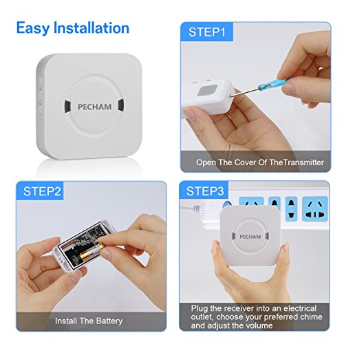 Introducing PECHAM Wireless Door Chime Kit For Top Level Security & Peace Of Mind At Home Or Work Made with your safety and convenience as top notch, our two portable electric doorbells with receiver will come to add peace of mind in your daily life, ensuring the arrival of your guests is clearly announced wherever you are!