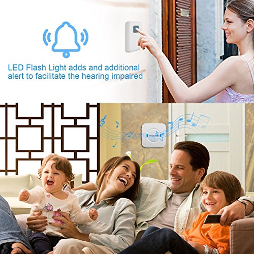 DISCREET FUNCTION WITH SMART LED FLASHING LIGHT: Keep your visitors' announcing discreet and ensure privacy when you don't want to be disturbed with PECHAM wireless doorbell with light! The transmitter button will flash BLUE LIGHT to add additional alert, while the receiver will flash to give a friendly hint of your guests' arrival.