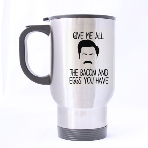 -. Title : Give Me All The Bacon And Eggs You Have Ron Swanson quote- Funny Travel Mug 14oz Coffee Mugs or Tea Cup Cool Birthday/christmas Gifts for Men,women,him,boys and Girls