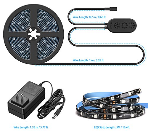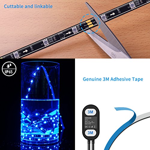 - ➤Safe & easy installation: LED light strip has a working voltage of 12V and are equipped with short circuit protection and memory function. IP65 waterproof, extremely low-heat, touchable and safety for children.The lights tape on the back come with an strong adhesive, easy installation.