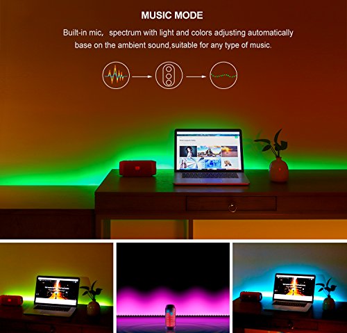 - ➤Special music mode : Built-in high sensitivity mic, spectrum with light and colors adjusting automatically base on the ambient sound, LED lights sync with music. The strip light suit any type of music, including slow, relaxing tunes and dance music.