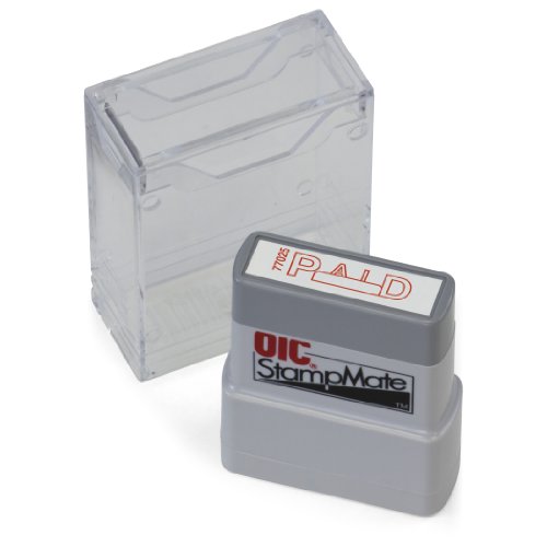 -. Feature : Individually packed in clear, hard sided, permanent storage boxes / Storage boxes may be snapped together as desk storage system / Impression size: 1/2"H x 1 1/2"W / Refillable with Officemate OIC 77043 Blue Stamper Refill Ink or Officemate OIC 77044 Red Stamper Refill Ink. / P.R.Int the word "PAID" in red with a space to fill in date or leave a note