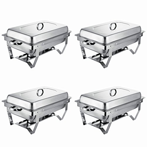 Chafer Buffet 4 Pack Chafer Set 9L Chafting Dish Foldable Buffet Chafer Stainless Steel for Buffet Party Description: chafer buffet is designed for putting food on display and keeping it warm,it's used to accommodate a large number of people,it's fit for parties ,banquet,and widely used in restaurant ,hotel,etc.The chafer is made of stainless steel, it's durable,easy to clean and rust-free. Features: Made of stainless steel,it's durable,easy to clean and rust-free. With large holding capacity of 9L,it can hold a wide variety of food. The package contained water pan, food pan, lid, folding frame and alcohol furnace. The chafer set is foldable,it could be easy carrying for its little space occupation after folding. Item Specifications: Type: Rectangular chafer buffet Capacity: 9L (each one) Material: stainless steel Overall size: 24 "x14" x11.4" Inner size: 19.29"x11" x3.54" Food Pan Size: 19.8"X12" Alcohol furnace size: 3.54" x9.8" Package Included: 4xFull size folding chafer frame 4xDeep water pan 4xDeep food pan 8xFuel holder 4xFuel holder tray 0 |