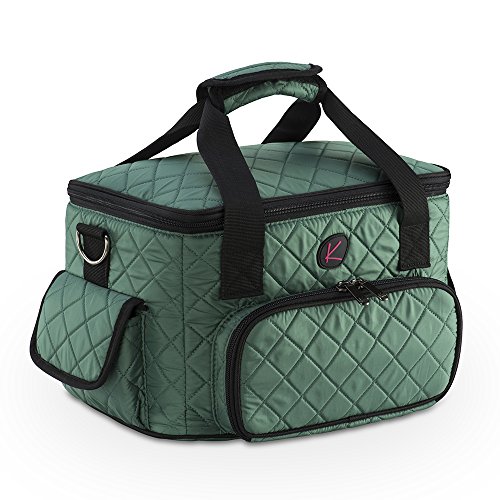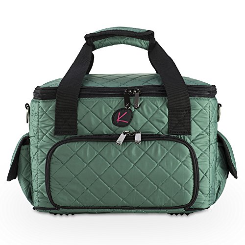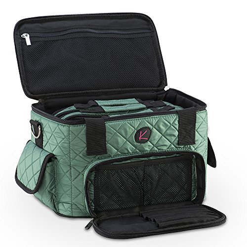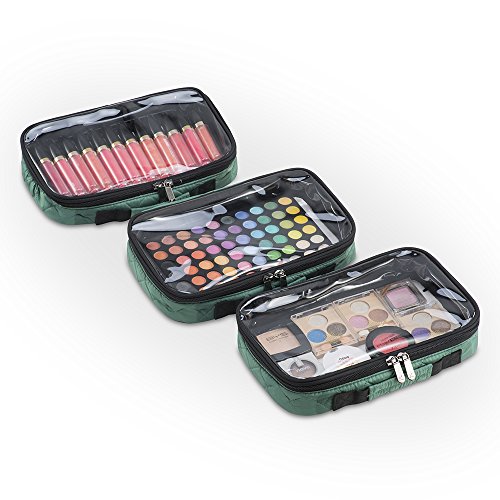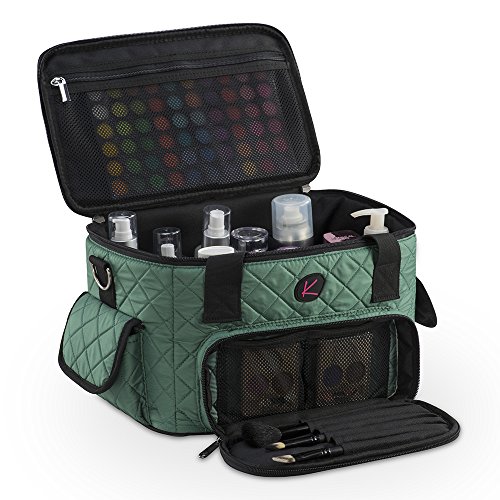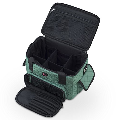 Quilted Makeup Artist Cosmetic Travel Bag with Storage Pocket and Removable Pouches, Ideal for Cosmetic Bottles and Brush Holder, Teal