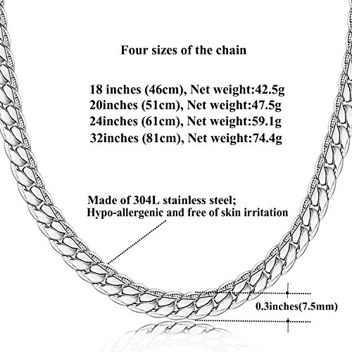 -. Feature : 304 Stainless steel;Nickel Free and Lead Free; Lobster Claw Clasps; Easy to Wear. / High polish lobster clasp; Durable and Shinny; Strict quality control one by one. / Suitable for any occasion ,Well-matched with Your Pendant. / 6MM-7.5MM Wide; 18-32 Inch Length ; More Options to Choose / Guarantee Forever :Money Return or Exchange with Quality Problem, Wrong Item, Size Problem, excluding Man-Made Broken.Just feel free to contact with us .solve all the problem within 24 hrs.We are always here for you.