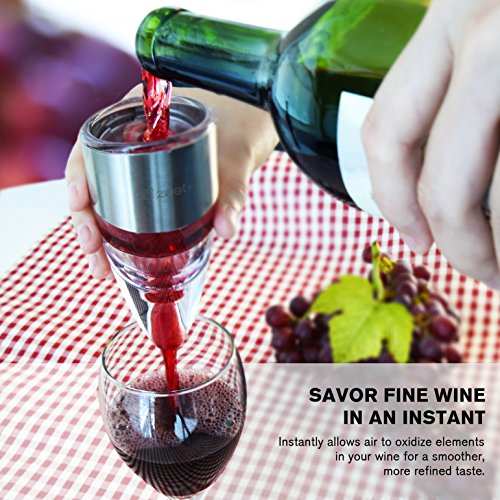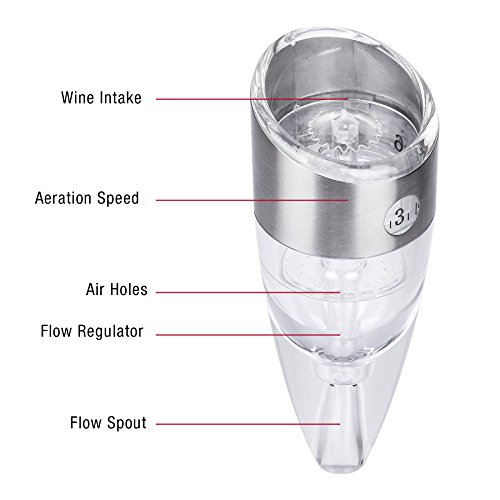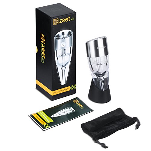 -. Brand : Zestkit -. Color : Silver -. EAN : 0783956542373 -. Feature : NO WAITING: Pour any wine bottle directly into the top opening for instant aeration. You no longer have to wait for the perfect taste. / BETTER TASTE: Utilizes barometric pressure to provide smoother, softer taste to any wine, increasing the overall value of your wine. / ADJUSTABLE SPEED: Offers complete wine tannins taste control with simple twist action 0 - 6 aeration speed level adjustment. / ACCESSORIES INCLUDED: Packaging includes a display stand and carry pouch for easy storage and portability. Aerate your wine wherever your celebrations may be. / WARRANTY: If you ever encounter a problem with this top of the line wine aerator, simply return it for a replacement or your money back. 1 Year Warranty. -. Label : Zestkit -. Manufacturer : Zestkit -. PackageQuantity : 1 -. ProductGroup : Kitchen -. ProductTypeName : KITCHEN -. Publisher : Zestkit -. Studio : Zestkit -. Title : Zestkit Wine Aerator: Adjustable 0-6 Speed Wine Aerating Decanter, Carry Pouch and Display Stand Included (Stainless Steel) -. UPC : 783956542373