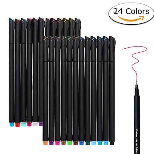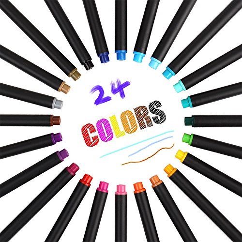 - 【24 UNIQUE VIVID COLORS】A wide variety of 24 colors Fineliner Pens, No Duplicates. 0.4 mm fine tip line point marker pens.Pen cap and pen tail draw the same color, easy to distinguish.Try color coding your activities & appointments to simplify your life!