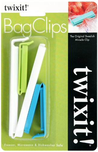 Twixit! Linden Sweden Bag Clips, White/Lime/Turquoise/Cobalt, Set of 1 Large and 2 Small