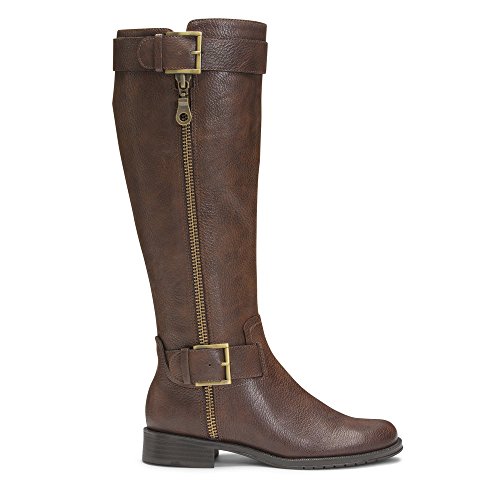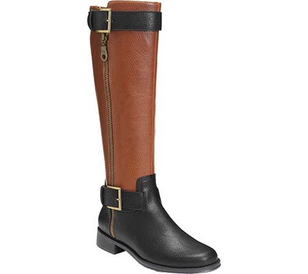 Studio : Aerosoles Publisher : Aerosoles Binding : Apparel Product Description Capture the trendiest equestrian style with this tone-on-tone knee-high riding boot. two thin straps with buckles wrap around, creating stylish detail you’ll want to flaunt … and you can with extended calf! open one up and you get up to 2” of extra room to tuck in jeans. memory foam footbed and a 1” heel for sweet comfort. 0