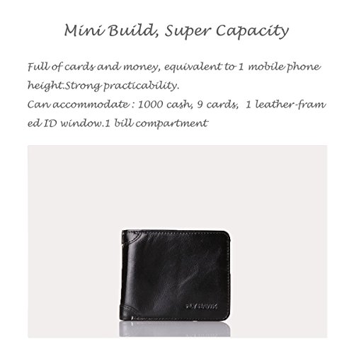 -. Feature : 1.ITALIAN GENUINE COWHIDE LEATHER WALLETS PURSES: Leather wallet gifts for men: gift packaging, the top gifts for men. Design is USA,Tough stitching and soft feeling.Hand Made by professional artisans.a beautifully crafted wallet that will only get better with age. / 2.RFID BLOCKING TESTED & APPROVED BY INDEPENDENT LAB TESTS. Mens rfid wallets with 13.56 MHZ. Our wallets have been tested for 13.56 MHz Frequency in which our credit cards, debit cards, driver license and ID cards operate. PLEASE BE NOTED THAT the signal of some ID badge, access cards and hotel room cards which operates in 80 KHz, can not be blocked by this wallet. / 3.ENHANCES PERSONAL SECURITY: Men's protcted rfid secure wallets - we leverage top RFID technology to block RFID signals used to electronically scan your wallet as someone passes by unnoticed. This keeps your vital information in driver license, debit cards and credit cards from being stolen. / 4.PREMIUM FUNCTIONALITY: Mens classic wallet with 9 card slots, 1 leather framed ID window and 1 bill compartment. Extra capacity leather slim fold wallets and perfect front pocket wallets.Top quality and luxury slim wallets!Dimensions = 4.13" 3.54" 0.39". / 5.SATISFACTION GUARANTEE: As a professional leather store, we know you'll love our wallet, that's why if you aren't 100% satisfied we will provide you with a refund or a free replacement - which ever you prefer. Buy more for your friends and family.