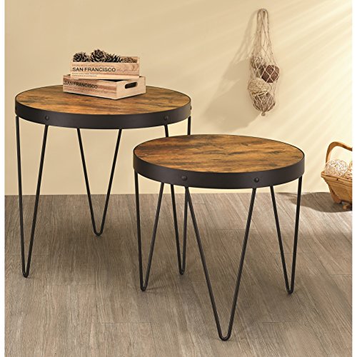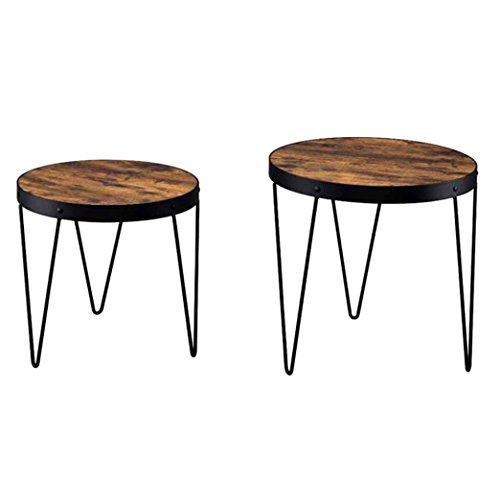 -. Title : A Line Furniture Kasreal Round Honey Cherry 2-piece Nesting Table Set