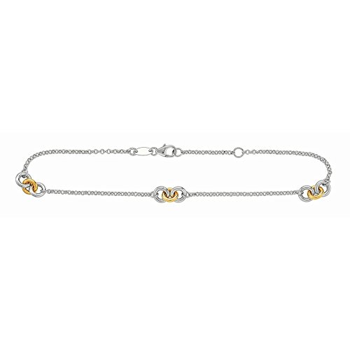 -. Title : Sterling Silver 14k Gold Fancy Anklet - 10 Inch