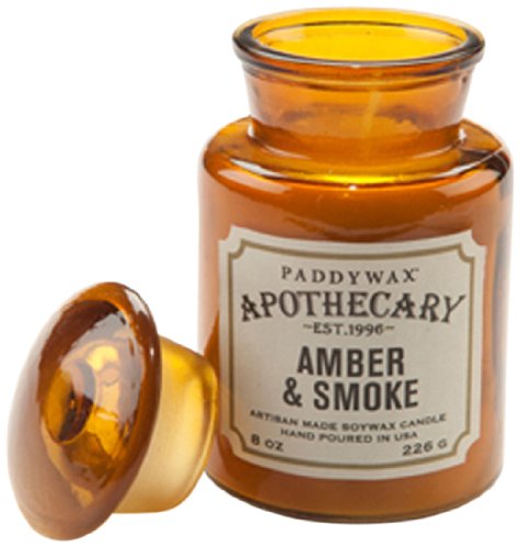 Paddywax Candles Apothecary Collection Glass Jar Candle, 8-Ounce, Amber and Smoke